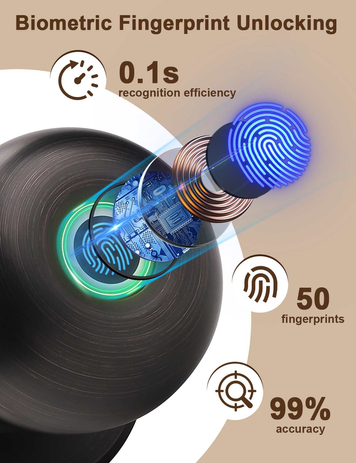 With fingerprint recognition, you'll never fumble for keys again. Just touch to unlock your door instantly, saving time and hassle, especially when your hands are full or you're in a rush.